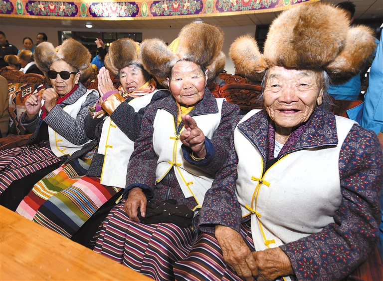 圖為拉薩市社會(huì)福利院的老人們圍坐在一起歡度重陽節(jié)。記者 唐斌 攝