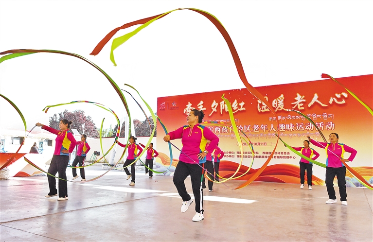 圖為2024年西藏自治區(qū)“牽手夕陽紅 溫暖老人心”老年人趣味運(yùn)動(dòng)活動(dòng)現(xiàn)場(chǎng)。記者 唐斌 攝