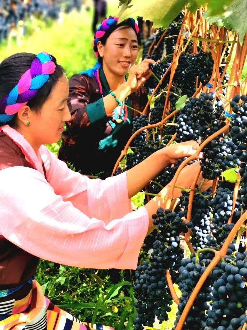 芒康當地,村民們正在摘取葡萄