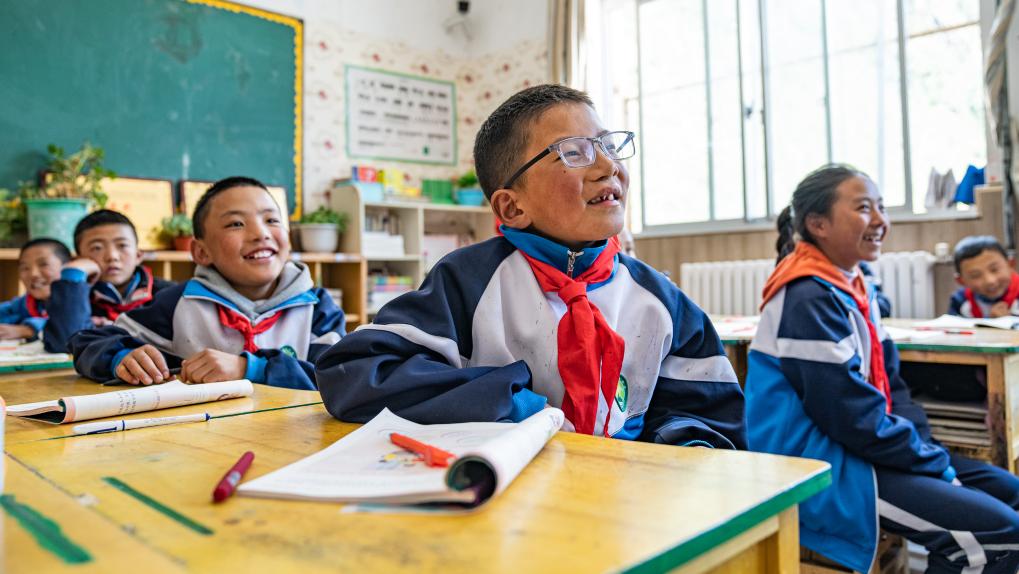 今年10歲的貢喬熱旦上五年級,他在班里的成績一直名列前茅。性格開朗、喜歡運動的他,時不時和班里的同學開個小玩笑。這所學校的大部分學生選擇寄宿制學習,學校實行“10+4”工作日教學模式,即上課10天、休息4天,這樣方便父母接送孩子,也有利于孩子們從小培養(yǎng)自理生活能力。