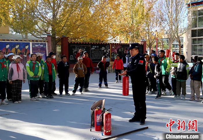圖為民警為學(xué)生們講解了滅火器的種類、適用范圍及正確使用方法。扎西拉姆拍 攝