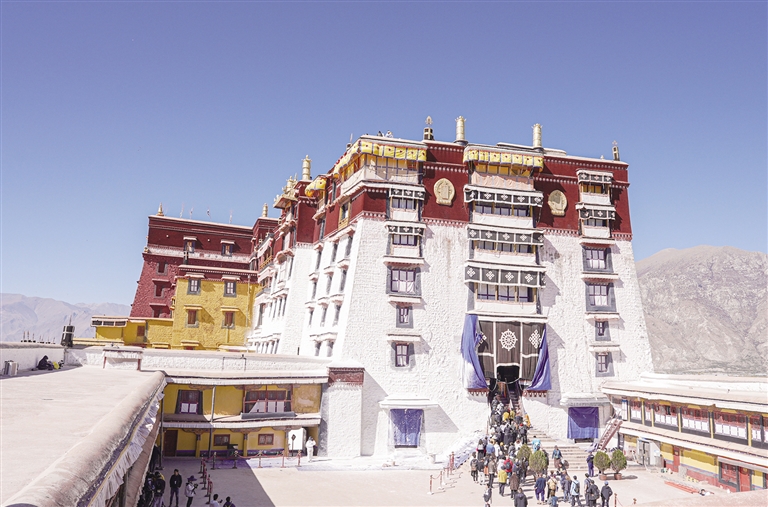 據(jù)了解,按照習(xí)俗慣例,每年藏歷九月前后,拉薩河谷地區(qū)雨季結(jié)束,天氣還沒(méi)完全變冷之前,布達(dá)拉宮就會(huì)開(kāi)始一年一度的粉刷工作。從17世紀(jì)開(kāi)始,粉刷布達(dá)拉宮已是300多年的傳統(tǒng)。布達(dá)拉宮每年的刷墻,是為了保護(hù)布達(dá)拉宮墻體結(jié)構(gòu),有效阻隔建筑外觀被風(fēng)吹日曬、雨水沖刷等自然侵蝕,同時(shí)也能避免外墻顏料脫落,墻體結(jié)構(gòu)老化等現(xiàn)象,確保布達(dá)拉宮建筑外觀能夠重?zé)ㄐ骂?,保持靚麗如初的顏色。