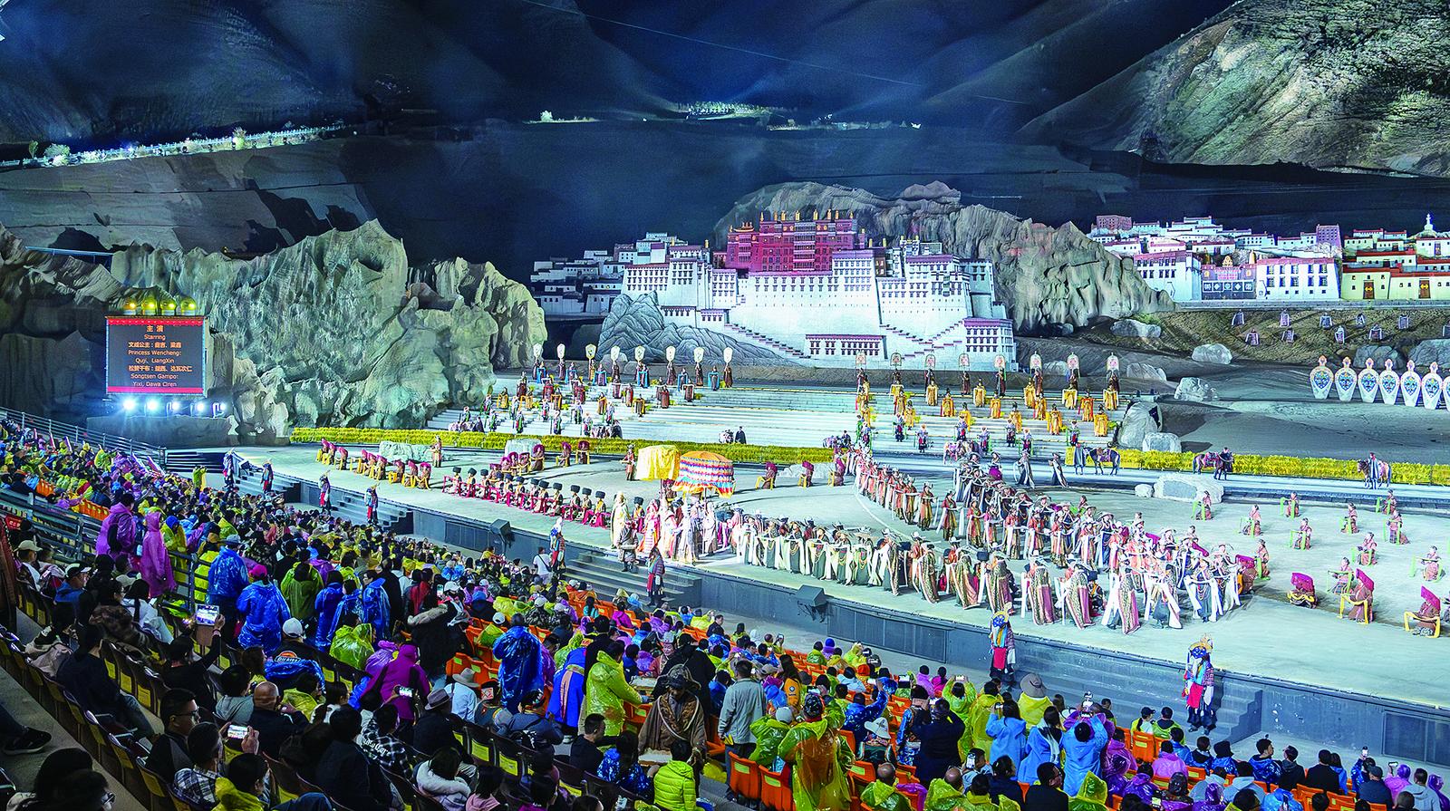 《文成公主》實(shí)景劇演出?!段某晒鳌穼?shí)景劇劇場(chǎng)提供