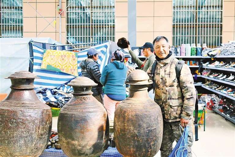 尼泊爾商戶加央在里孜口岸臨時交易市場。通訊員 西繞拉珍 記者 頓珠扎西 攝