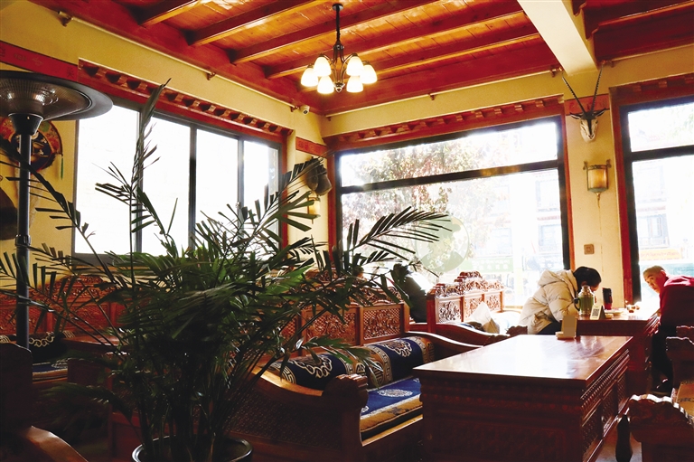實(shí)際上,拉薩城里遍布著許多甜茶館,這些小館沒(méi)有華麗的裝飾,沒(méi)有高昂的價(jià)格,甚至沒(méi)有顯眼的門牌。它們隱藏在拉薩的大街小巷中,面積不大、藏式裝修,有些老甜茶館內(nèi)桌椅都被盤“包漿”了,但這并不影響店里藏面的味道和甜茶的濃香。在拉薩,你總能在不經(jīng)意間發(fā)現(xiàn)一家不起眼的甜茶館,里面常常傳來(lái)人們的歡聲笑語(yǔ)。這些甜茶館不僅是人們填飽肚子的地方,更是拉薩人放松身心的溫暖港灣,承載這拉薩的文化。