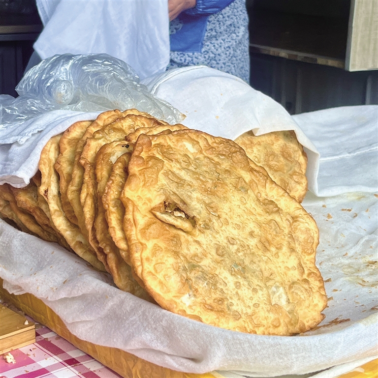 如果你擔(dān)心一份蓋澆飯吃不飽,可以提前在位于同一條巷子的“爺爺奶奶肉餅”買上一個(gè)肉餅。這家店同樣是城關(guān)區(qū)的老店,深受拉薩群眾的喜愛。肉餅脆而不油,面粉和肉餡的香氣完美融合。建議上午12:00前去,這家店鋪通常賣完肉餅就早早關(guān)門啦!