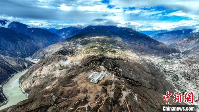 海拔3300米象鼻山頂?shù)拇ú仉娏β?lián)網(wǎng)工程500千伏巴塘變電站與金沙江和巴塘縣城比鄰而居。李威 攝