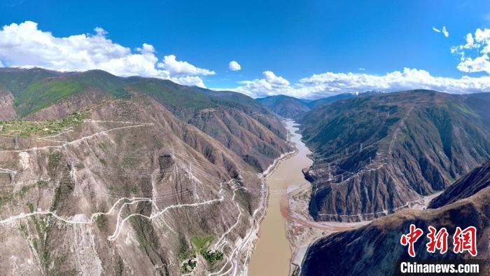 四川巴塘與西藏芒康交界處,川藏聯(lián)網(wǎng)輸電線路跨越金沙江大峽谷。劉湘釩 攝
