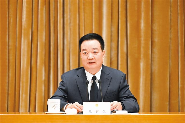 王君正在講話中指出,習近平總書記在慶祝全國人民代表大會成立70周年大會上的重要講話,全面回顧了黨領導全國人民建立和完善人民代表大會制度的光輝歷程,系統(tǒng)總結了實行人民代表大會制度的顯著政治優(yōu)勢和寶貴經(jīng)驗,深刻闡釋了新時代人民代表大會制度一系列理論和實踐創(chuàng)新重大成果,對在新時代堅持好、完善好、運行好人民代表大會制度提出明確要求,進一步豐富和發(fā)展了黨關于堅持和完善人民代表大會制度的理論,是一篇閃耀著馬克思主義真理光輝的綱領性文獻,為新時代新征程充分發(fā)揮國家根本政治制度作用、堅持和發(fā)展全過程人民民主、推進國家治理體系和治理能力現(xiàn)代化指明了前進方向、提供了根本遵循。