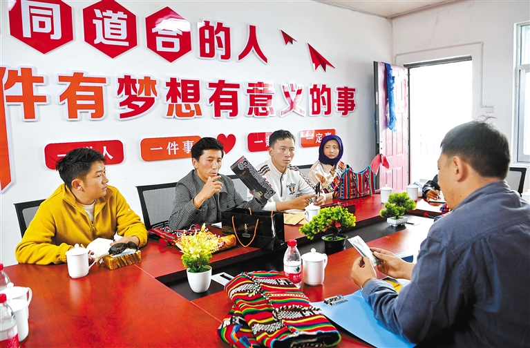 那曲市安多縣的大學(xué)畢業(yè)生倉秋多吉聯(lián)合6人創(chuàng)業(yè),于2021年創(chuàng)辦了安多托尕爾倉游牧產(chǎn)業(yè)有限責(zé)任公司。公司搭建了民族手工藝產(chǎn)品、土特產(chǎn)銷售平臺,在當(dāng)?shù)卣畠?yōu)化營商環(huán)境政策的支持下,創(chuàng)業(yè)團(tuán)隊逐步擴(kuò)大,帶動了當(dāng)?shù)剞r(nóng)牧民產(chǎn)業(yè)興旺。 圖為倉秋多吉(左二)和團(tuán)隊核心成員商討產(chǎn)品銷售提升策略。(資料圖片) 新華社記者 張汝鋒 攝