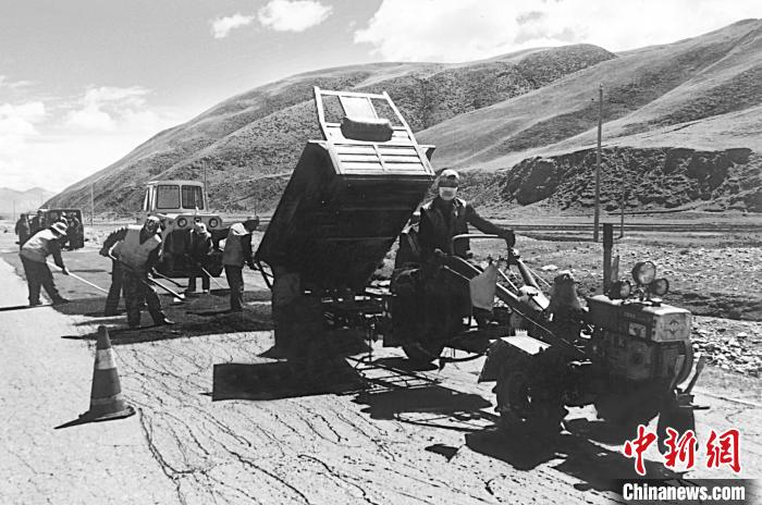資料圖為青藏公路早期養(yǎng)護(hù)。西藏自治區(qū)交通運(yùn)輸廳 供圖