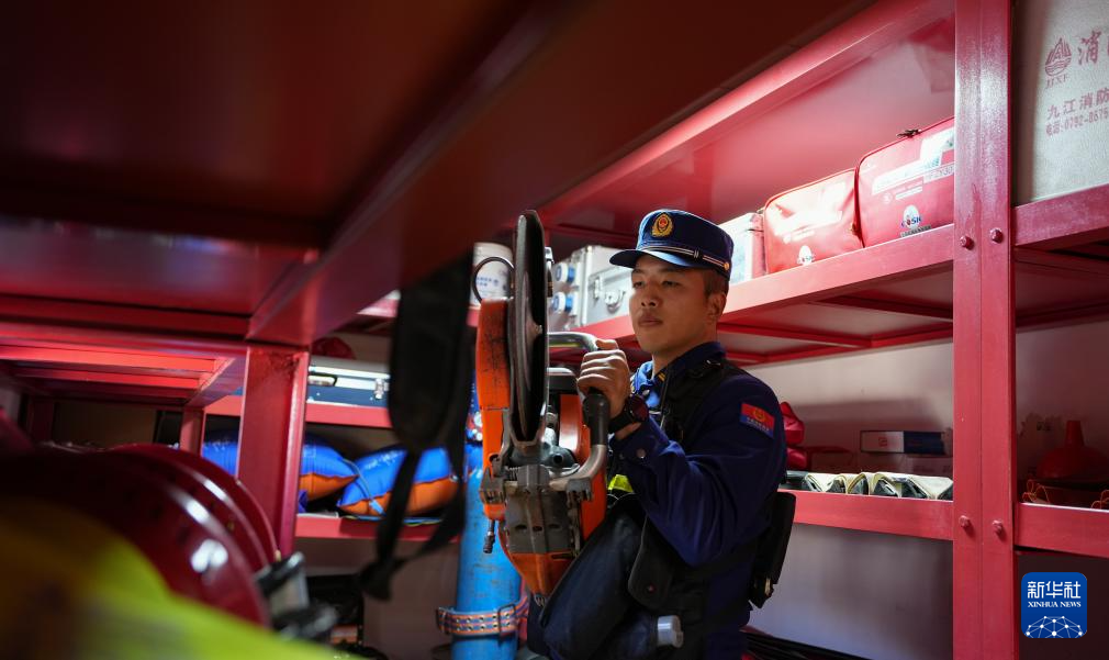 12月5日,布宮消防救援大隊(duì)隊(duì)員在例行檢查消防設(shè)備。新華社記者 晉美多吉 攝