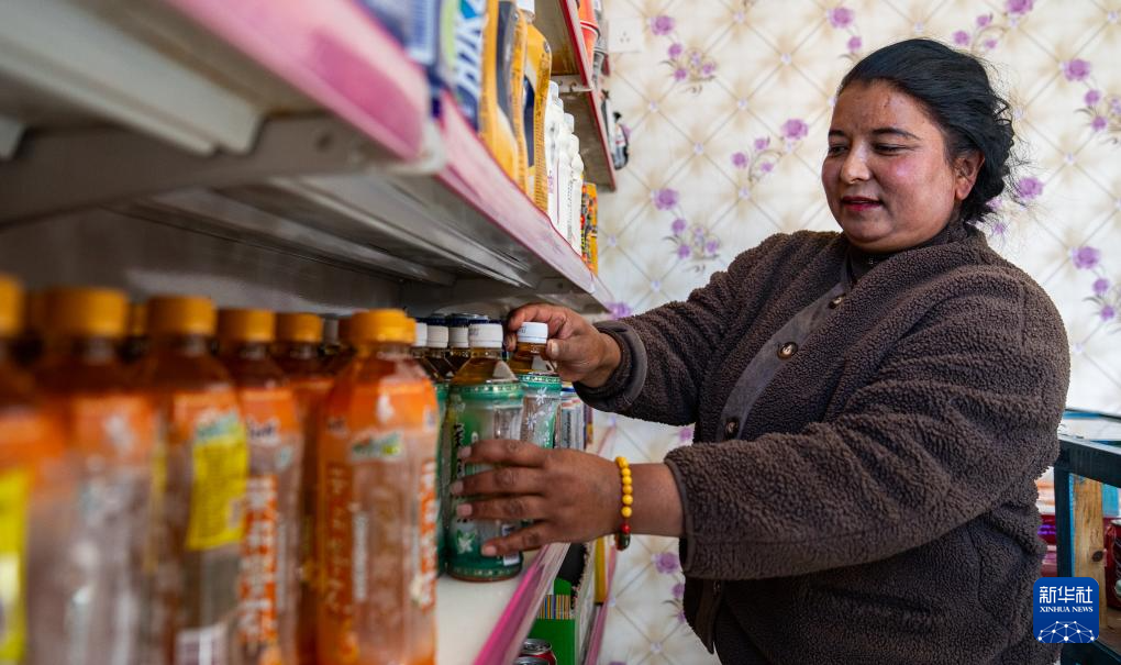 12月15日,一名達(dá)曼新村的婦女在自家商店里整理貨架。新華社記者 丁增尼達(dá) 攝
