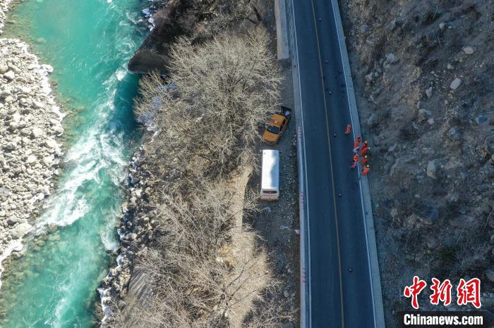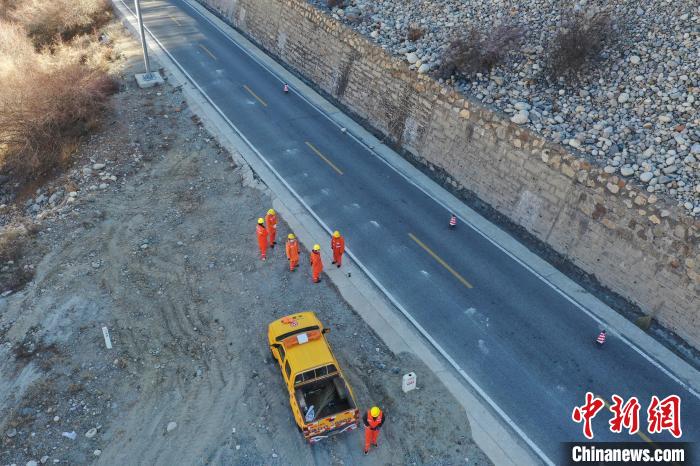 12月16日,西藏自治區(qū)林芝公路事業(yè)發(fā)展和應(yīng)急保障中心(工布江達(dá)養(yǎng)護(hù)段)道路養(yǎng)護(hù)工人及時(shí)清除川藏公路上的落石,保障道路暢通。該養(yǎng)護(hù)段擔(dān)負(fù)著川藏公路沿線工布江達(dá)縣路段的養(yǎng)護(hù)管理、應(yīng)急搶險(xiǎn)等工作,包括路面修補(bǔ)、清理邊溝、維護(hù)交通安全設(shè)施等日常養(yǎng)護(hù)工作。圖為道路養(yǎng)護(hù)工人在公路上巡護(hù)。(無(wú)人機(jī)照片)中新社記者 貢嘎來(lái)松 攝