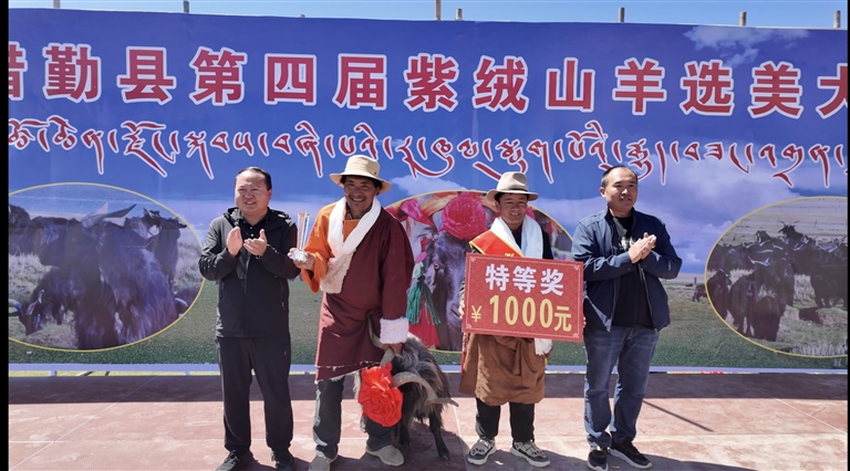除了天然飲用水產(chǎn)業(yè),措勤縣紫絨山羊也是當(dāng)?shù)氐囊粡埩裂勖W鳛槲鞑匕⒗锏貐^(qū)首批通過(guò)國(guó)家地理標(biāo)志登記的農(nóng)產(chǎn)品,紫絨山羊同樣承載著措勤縣產(chǎn)業(yè)發(fā)展的希望。