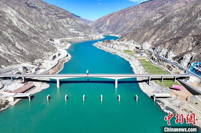 今年是川藏公路、青藏公路(簡稱“兩路”)通車70周年。70年來,“兩路”是西藏的經濟命脈,更是西藏與其他省區(qū)交往交流交融之路。圖為12月21日,川藏交界的金沙江大橋。(無人機照片) 薛蒂 攝