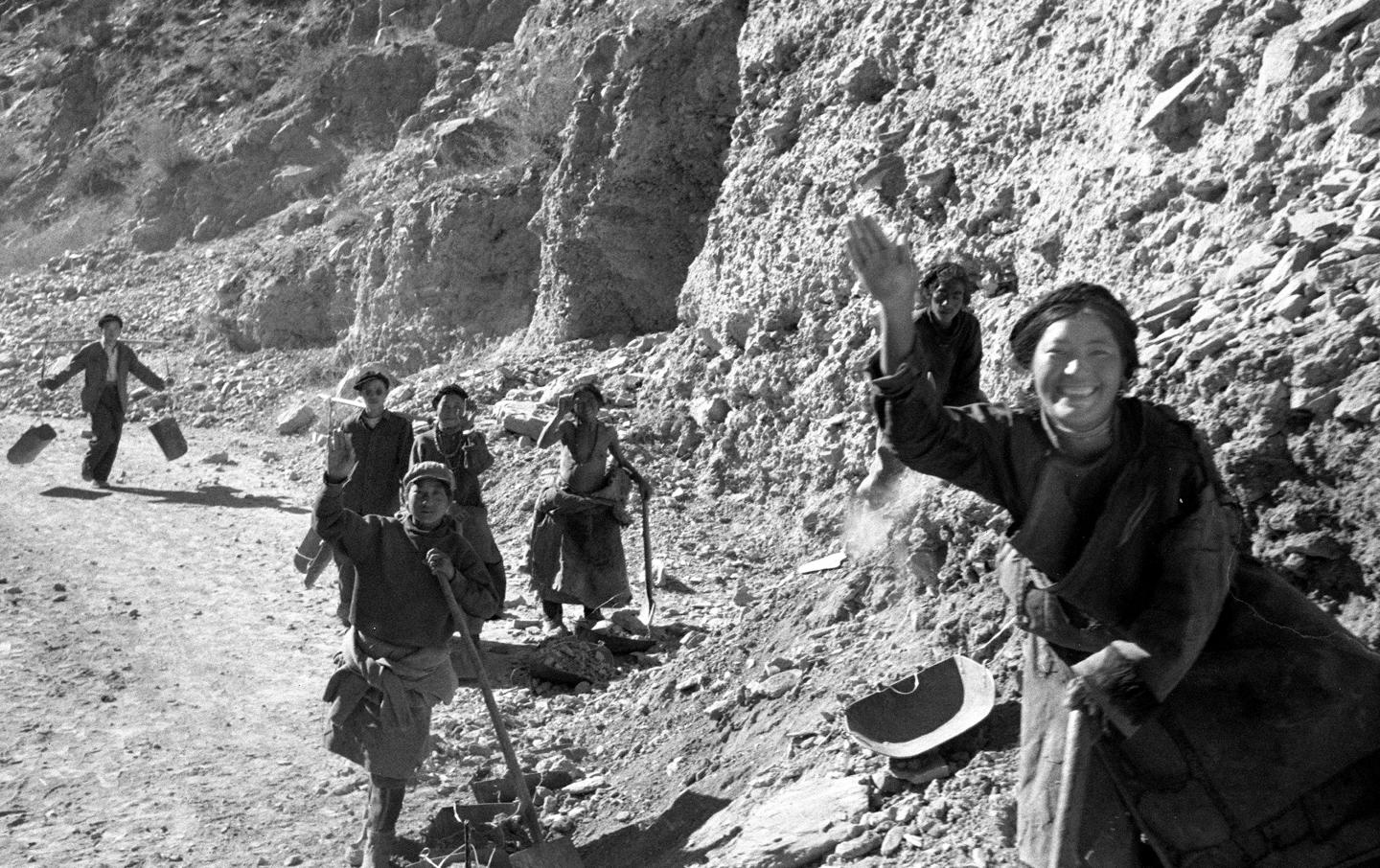 二十世紀60年代,在川藏公路上,辛勤的藏族養(yǎng)路工人熱情地向過路的旅客們揮手。