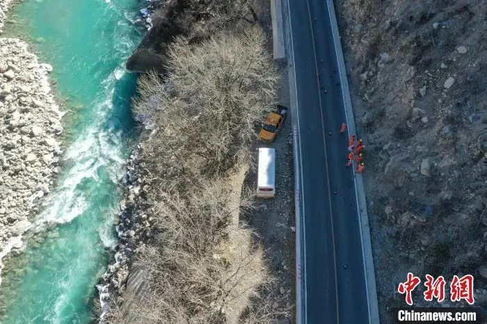 圖為部分養(yǎng)護(hù)路段(右)。(無人機照片)中新社記者 貢嘎來松 攝