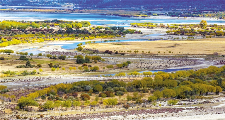 在雅尼國家濕地公園,記者見到來自廣西的游客蔡歡,“沒想到林芝有這么一片豐富濕地,令我驚喜,我要去濕地里拍越冬鳥類?!彼f。與蔡歡不同的是,在爭相“打卡”留影的人群中,林芝市林芝鎮(zhèn)立定村村民白瑪喬也在拍照,與游客不同,她拍的是動物行蹤、植被狀況,防止非法盜捕、違規(guī)采砂。作為雅尼國家濕地公園管護(hù)員白瑪喬對雅尼濕地公園變化看在眼里。“簡而言之就是四個字——天翻地覆”。立定村靠近雅尼國家濕地公園。過去,這一帶植被稀疏,雨季過后,隨著水位下降,黃沙飛揚?!扒囡锞驮谘沤?,忙活一會兒,頭發(fā)、鼻孔里都是沙子。”白瑪喬回憶道。