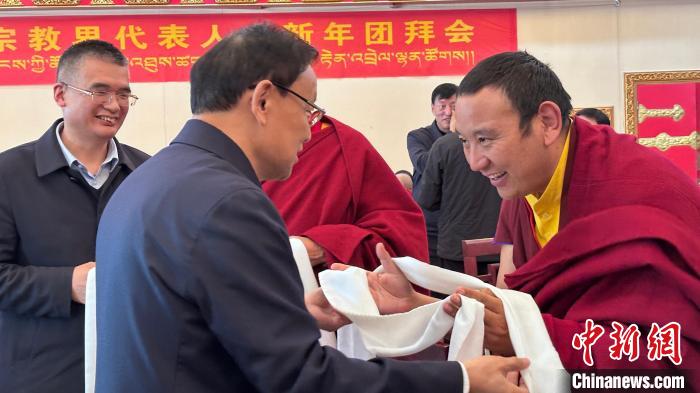 27日,在2025年元旦來臨之際,西藏自治區(qū)黨委統(tǒng)戰(zhàn)部在拉薩舉行全區(qū)宗教界代表人士新年團拜會。