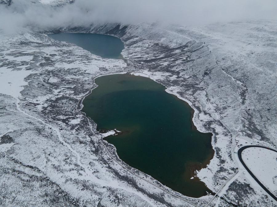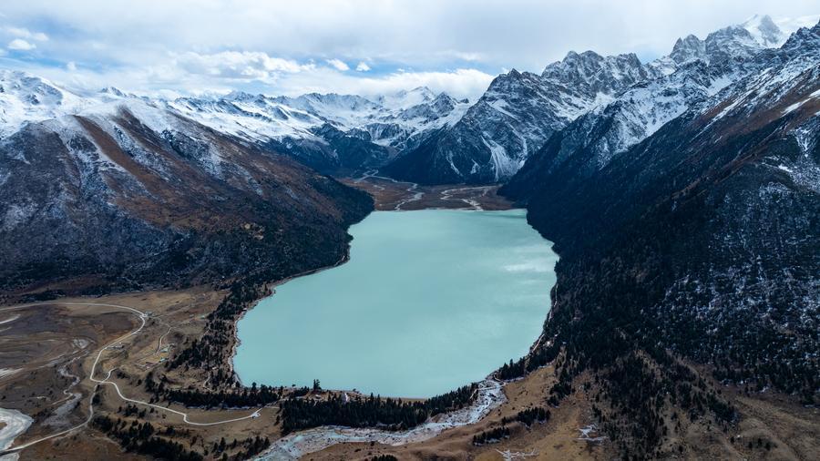 這是2024年11月1日在四川省甘孜州德格縣境內(nèi)拍攝的玉隆拉措(無(wú)人機(jī)照片)。新華社記者 沈伯韓 攝