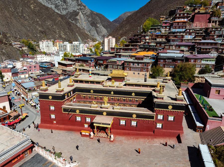 這是2024年11月2日在四川省甘孜州德格縣拍攝的德格印經(jīng)院(無(wú)人機(jī)照片)。新華社記者 沈伯韓 攝