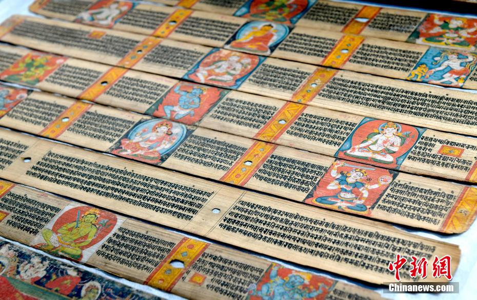 以“見證與守望——鑄牢中華民族共同體意識(shí)主題展”為主題的展覽近日亮相西藏自治區(qū)拉薩市布達(dá)拉宮雪城珍寶館。本次主題展精選100余件文物珍品,展覽通過文物、古籍及布達(dá)拉宮的傳承與發(fā)展,講述各民族交往交流交融的故事。圖為1月2日,展覽中的13世紀(jì)《般若八千頌》貝葉經(jīng)寫本。中新社記者 李林 攝