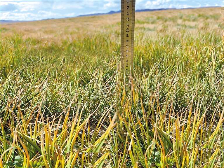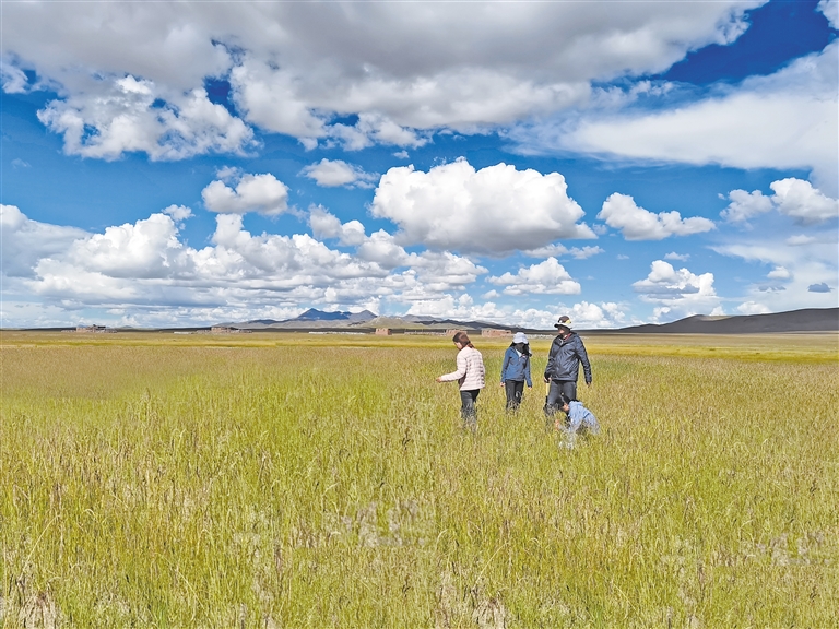 科研人員視察那曲市色尼區(qū)那么切鄉(xiāng)生態(tài)修復(fù)點牧草長勢情況。