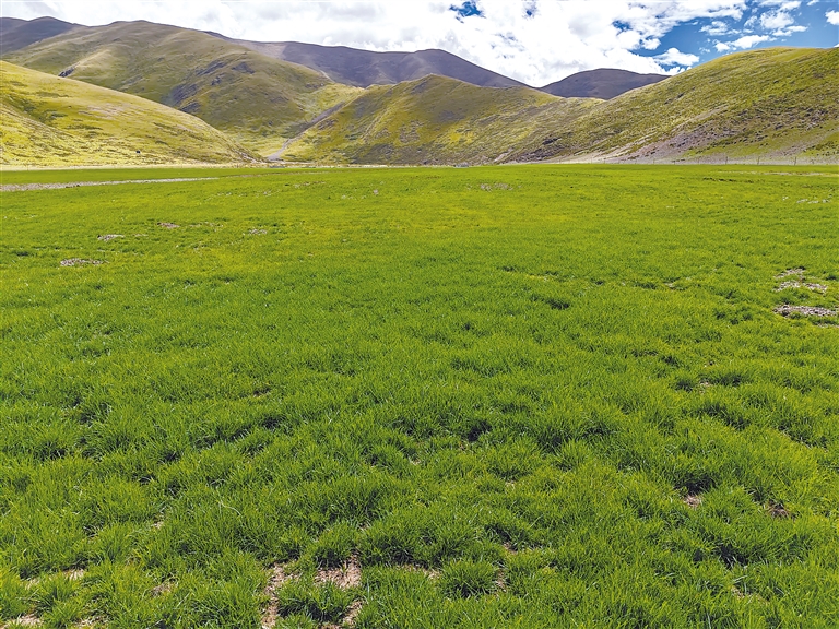 拉薩市當雄縣寧中鄉(xiāng)退化草地修復(fù)區(qū)牧草長勢良好。