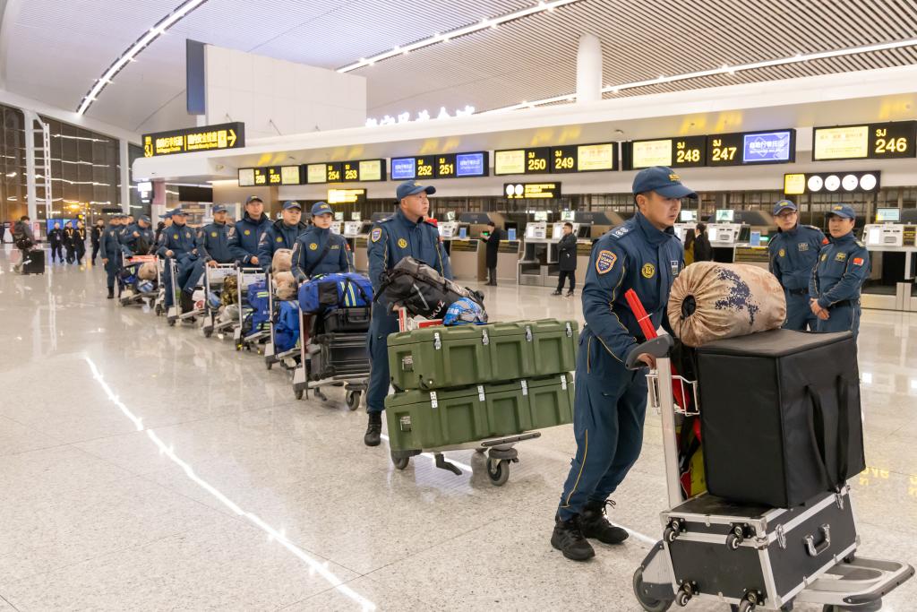 1月9日凌晨,重慶市藍(lán)天救援隊(duì)隊(duì)員出發(fā)前往西藏。新華社發(fā)