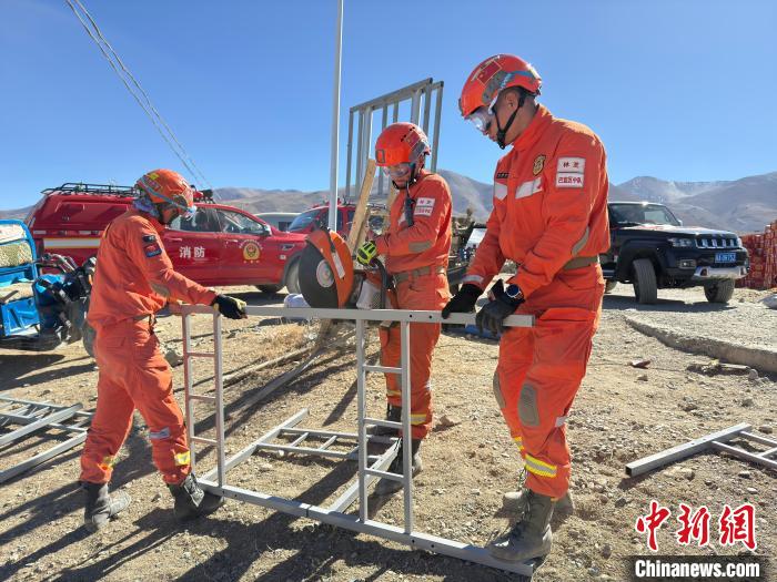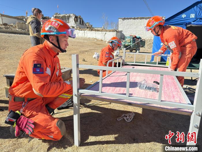 圖為消防指戰(zhàn)員正在為災區(qū)組裝床鋪。西繞拉翁 攝