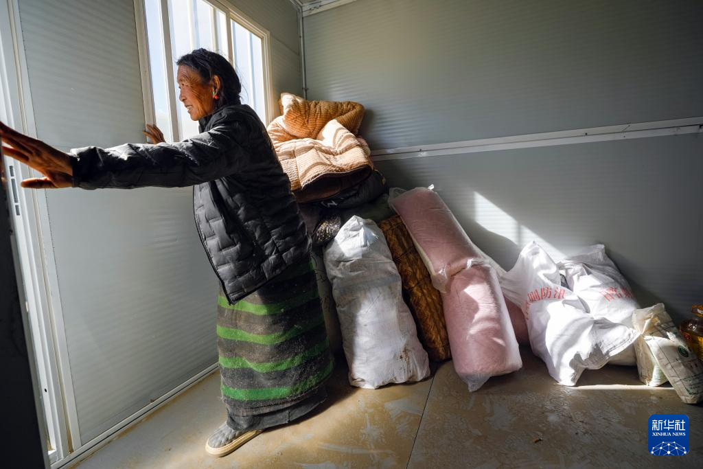 1月10日,在定日縣長所鄉(xiāng)古榮村,受災(zāi)群眾搬入板房。新華社記者 晉美多吉 攝