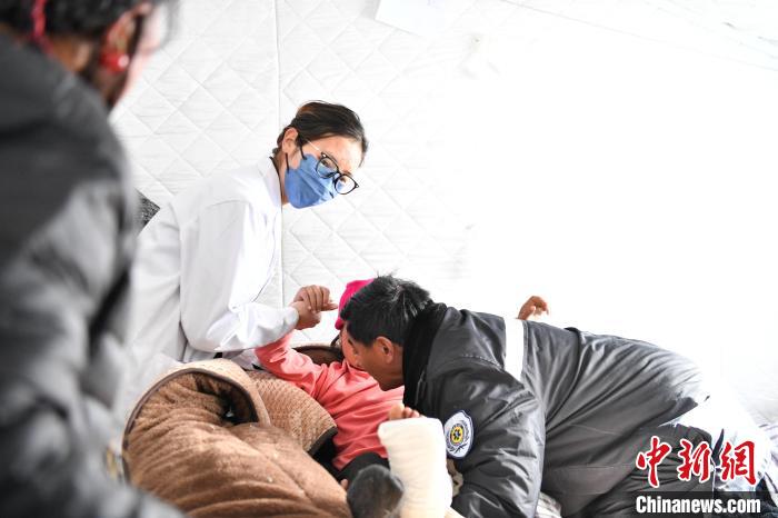 1月10日,西藏定日,醫(yī)護(hù)人員帶老人達(dá)娃的孫女去復(fù)查。 中新社記者 貢嘎來(lái)松 攝