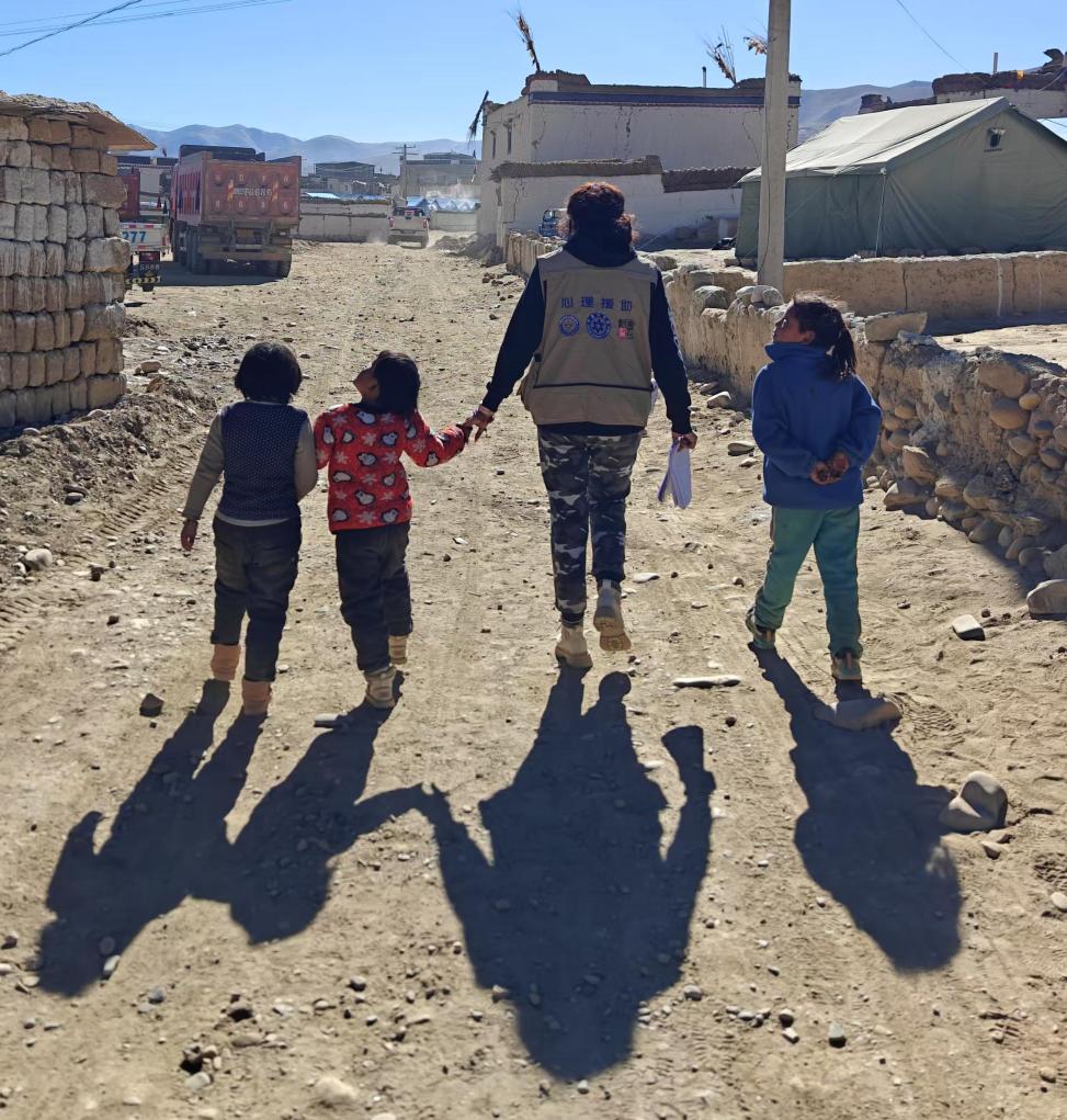 1月9日深夜,譚惜仁等4名隊(duì)員趕到了定日縣。10日她來(lái)到西藏森林消防總隊(duì)特勤大隊(duì)負(fù)責(zé)的措昂村安置點(diǎn),原計(jì)劃為森林消防隊(duì)員提供心理服務(wù),沒(méi)想到戰(zhàn)士們說(shuō):“老百姓和孩子們更需要!”