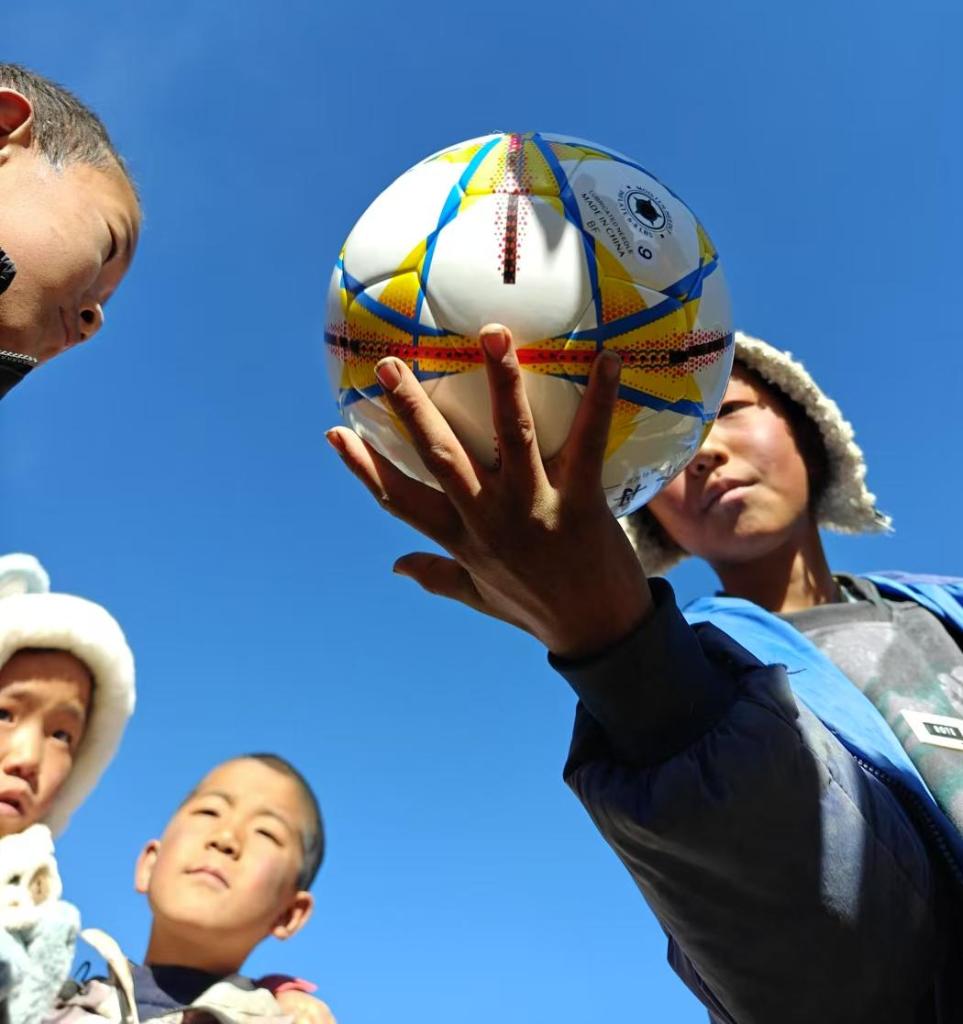 男孩子們喜歡踢球,譚惜仁給他們找來(lái)足球,兩個(gè)土塊一擺就是球門(mén),開(kāi)踢。他們給自己起了個(gè)響亮的名字——“牦牛隊(duì)”!