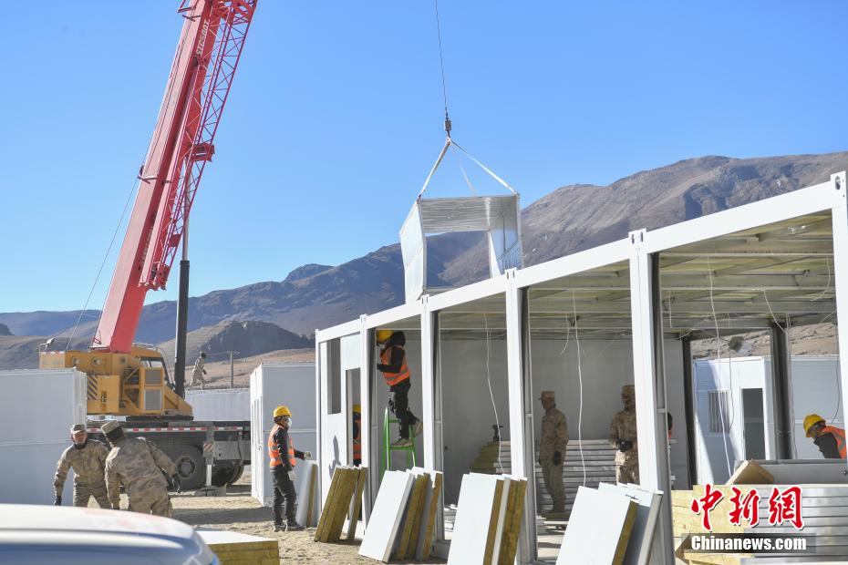 1月7日9時5分,西藏自治區(qū)日喀則市定日縣發(fā)生6.8級地震,震源深度10公里。災(zāi)情就是命令,當(dāng)?shù)卣推髽I(yè)迅速行動,目前災(zāi)區(qū)多個鄉(xiāng)村都在加緊進(jìn)行保溫板房建設(shè),只為讓受災(zāi)民眾早日擁有“安心巢”。據(jù)了解,每間板房有18平方米,可容納4到5人,板房設(shè)有折疊床、桌子、爐子等,并保障民眾用電需求,讓他們更好地度過冬天。圖為1月9日,西藏日喀則市定日縣曲洛鄉(xiāng)措昂村安置點(diǎn),中國交建西藏指揮部抗震救災(zāi)前線工人在搭建保溫板房。中新社記者 貢嘎來松 攝