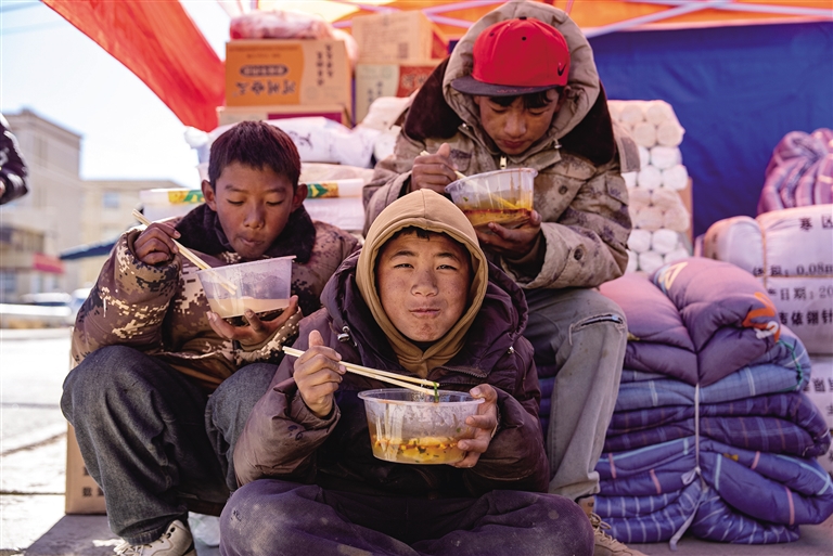 “2023年,我們老家甘肅積石山發(fā)生地震的時(shí)候,我在日喀則,當(dāng)時(shí)心里很難受,但是看到全國都在支援老家,心里暖暖的。這次定日地震,我和老鄉(xiāng)立刻就過來了。能讓大家吃上熱飯、看到大家滿足的笑臉,我就很開心了。”馬俊云說。