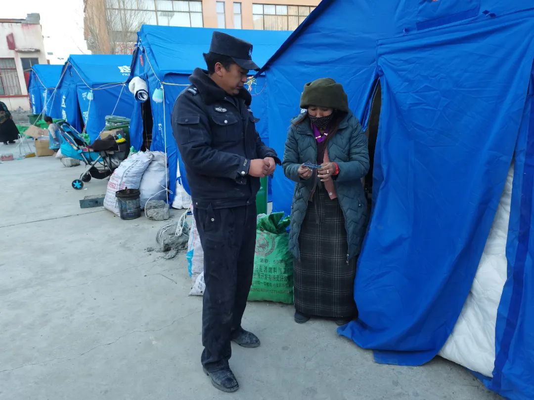 天還未亮,民輔警已投身救災(zāi)一線,忙碌于清點救援物資。緊接著,他們步履不停,深入每一村每一戶,細(xì)致收集家庭基本信息,評估受災(zāi)程度及房屋損毀情況,并逐一核實帳篷內(nèi)供暖、供電等基本生活需求的落實情況。走訪之際,一張張警民聯(lián)系卡被張貼于顯眼位置,親手遞到群眾手中,旨在迅速響應(yīng)群眾訴求,引導(dǎo)合理表達困難與期望。同時,他們對孤寡老人、殘疾人、精神病患者、流浪人員及重癥病患等特殊群體給予了特別關(guān)注,積極協(xié)調(diào)資源,切實解決其實際難題,構(gòu)建起一座堅實的警民溝通橋梁。為確保轄區(qū)安寧,民輔警們進一步加大了社會面巡邏力度,細(xì)致排查潛在矛盾糾紛,全力預(yù)防偷盜、詐騙、搶劫等違法犯罪行為,當(dāng)?shù)弥罕娯斘锉焕颐媾R損毀,他們不顧危險,憑專業(yè)技能穿梭廢墟,爭分奪秒搶救財物,全力守護群眾財產(chǎn)安全。在這過程中,民輔警不辭辛勞,反復(fù)穿梭于村落之間,確保救助工作覆蓋到每一個角落,每一個人,無論多少次往返,只為確?!安宦┮粦?,不落一人”?!熬焱荆銈冃量嗔?!”“感謝你們的付出,為你們點贊加油!我們一起努力戰(zhàn)勝災(zāi)情!”……群眾一句句暖心的話語,化作源源不斷的動力,讓民輔警們更加堅定了抗震救災(zāi)必勝的信心 。