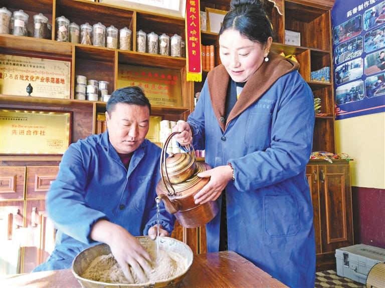 在村子里,受他們的影響,村民們也躍躍欲試,紛紛成立了合作社。曲旺作為婦女代表,站在工坊中間,目光堅(jiān)定而充滿希望:“今后啊,我更有信心帶動(dòng)更多的姐妹走上商業(yè)發(fā)展道路,讓咱這藏香事業(yè)越做越大,在傳承非遺的同時(shí),繼續(xù)給鄉(xiāng)親們鋪就增收致富路?!?/p>