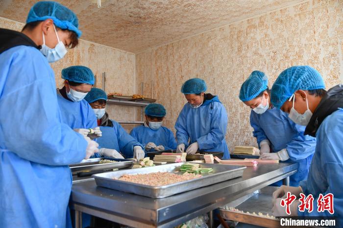2月10日,西藏拉薩市林廓北路一家卡塞店里,工人在制作卡塞?!翱ㄈ笔且环N油炸面食,是藏歷新年必不可少的食物。隨著藏歷新年的日益臨近,古城拉薩各個(gè)加工銷售“卡塞”的店鋪飄出陣陣香味。中新社記者 貢嘎來(lái)松 攝