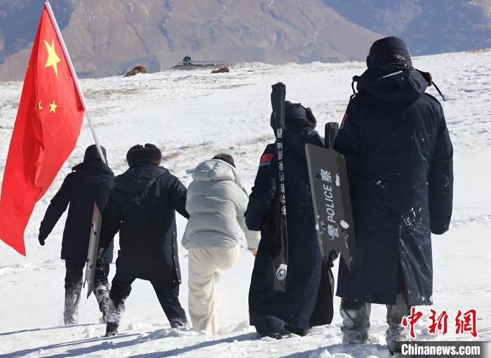在元宵節(jié),李嘉興執(zhí)意要跟隨丈夫體驗(yàn)一次巡邊。因此,此次巡邏隊(duì)伍中,不僅有經(jīng)驗(yàn)豐富的老警員,也有初到高原的新警,更有這位初來(lái)乍到的警嫂。大家手拉著手,踩著厚厚的積雪艱難前行,途中還不時(shí)互相提醒小心腳下,注意安全。