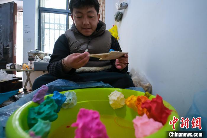 “我大概從初中一年級開始,每年藏歷新年前都和父親來拉薩捏酥油花,除了種地和打工,酥油花是我們家的主要收入來源?!?月20日,在拉薩市城關區(qū)吉崩崗街道一出租房內(nèi),24歲的大學生扎西歐珠對中新社記者講述寒假捏制酥油花的經(jīng)歷。