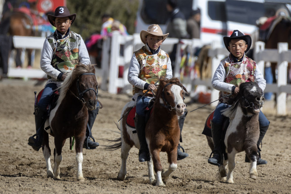 來自西藏自治區(qū)民族傳統(tǒng)馬術(shù)隊(duì)的騎手們
