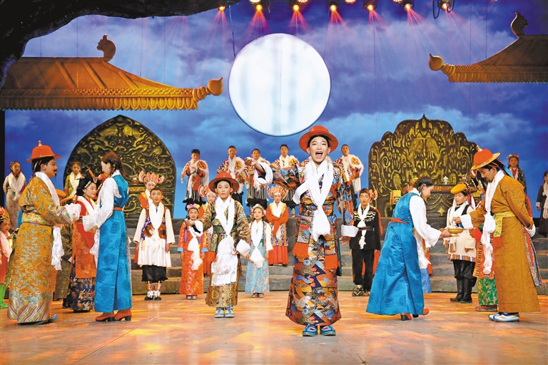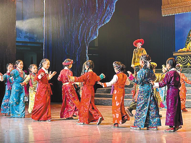 2023年雪頓節(jié)期間,少兒舞臺(tái)劇藏戲《頓月頓珠》終于與觀眾見面,贏得一致好評(píng)。云登羅布記得,第一次首演成功后,所有主創(chuàng)和指導(dǎo)老師在現(xiàn)場激動(dòng)得哭了:“我們做到了!”