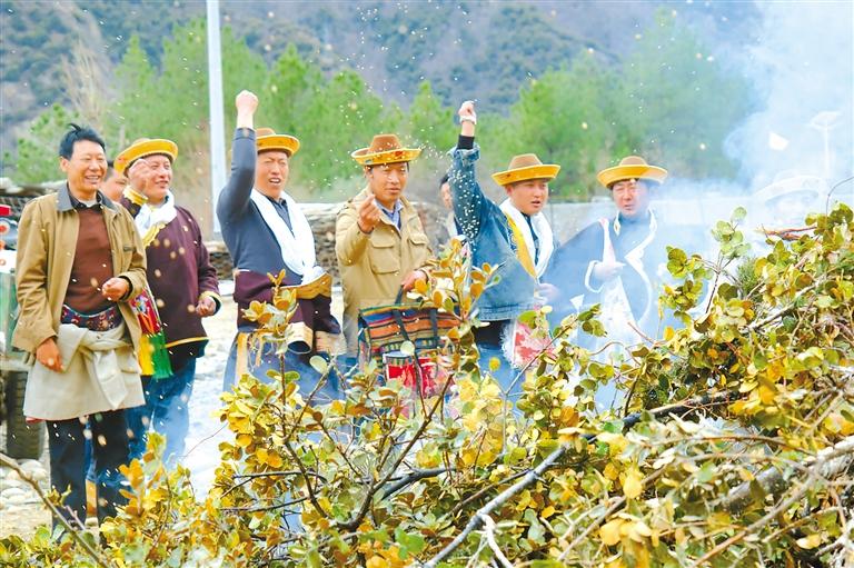 山南市瓊結(jié)縣拉玉鄉(xiāng)村民在煨桑,祈求風調(diào)雨順。通訊員 米瑪央金 倫珠澤仁 攝