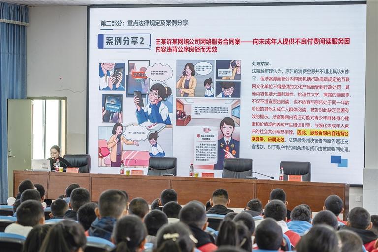 當(dāng)日上午10時(shí)30分,未成年人網(wǎng)絡(luò)保護(hù)領(lǐng)域?qū)<疑蛞U以《未成年人網(wǎng)絡(luò)保護(hù)條例》為重點(diǎn),圍繞網(wǎng)上交友、游戲充值、網(wǎng)絡(luò)欺凌、個(gè)人信息泄露等典型案例,深入淺出地向拉薩市第二高級(jí)中學(xué)的同學(xué)們講解了網(wǎng)絡(luò)行為的法律邊界和潛在風(fēng)險(xiǎn),演講引人入勝,學(xué)生們踴躍發(fā)言,氛圍很是熱烈。