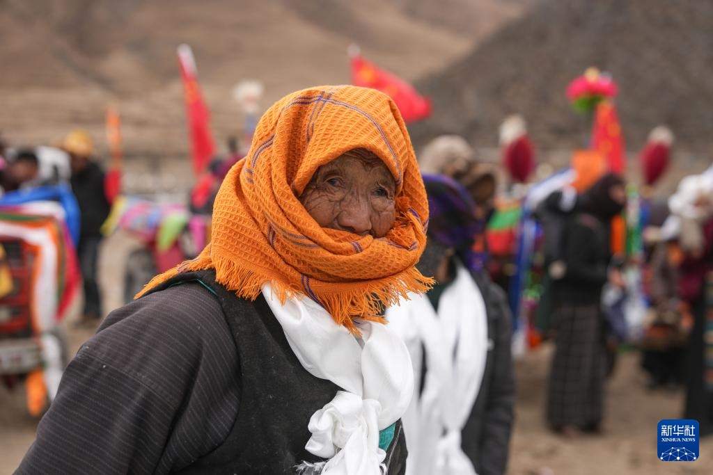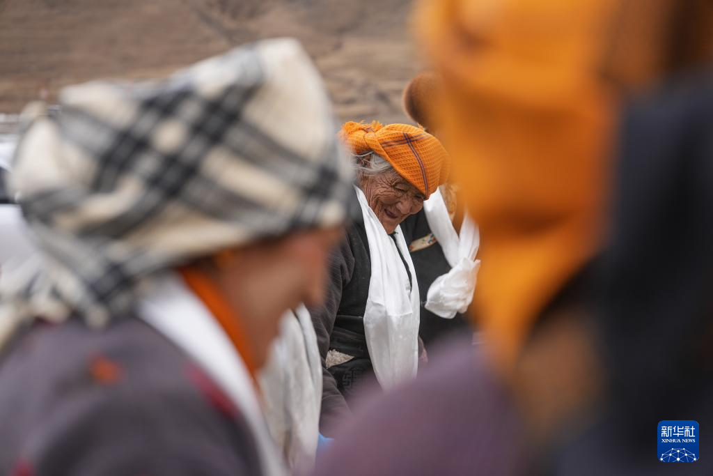 在春耕大典上,白姆老人和鄉(xiāng)親一起跳鍋莊(3月16日攝)。新華社記者 晉美多吉 攝