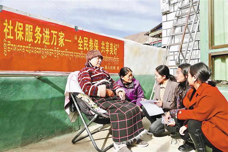 山南市瓊結(jié)縣人力資源和社會保障局工作人員入戶辦理養(yǎng)老保險待遇資格認(rèn)證。