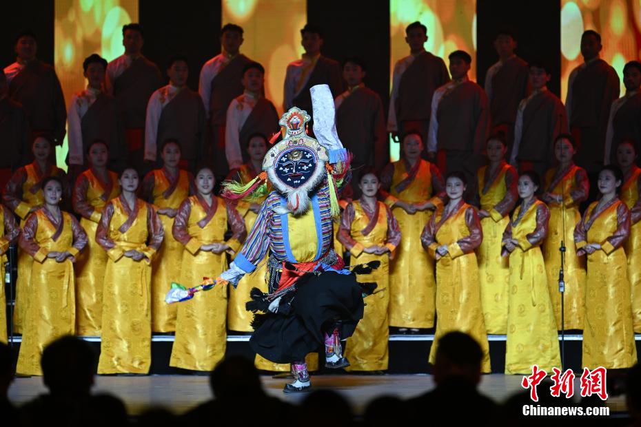 3月27日晚,為紀(jì)念西藏百萬農(nóng)奴解放66周年,由中共拉薩市委、拉薩市人民政府主辦,拉薩市委宣傳部承辦的“盛世中國幸福西藏”拉薩市紀(jì)念西藏百萬農(nóng)奴解放66周年群眾合唱比賽,在拉薩市群眾文化體育中心激昂上演。據(jù)悉,本次合唱比賽共有11支隊伍,由拉薩市各縣(區(qū))、功能園區(qū)、農(nóng)牧民群眾、企業(yè)職工等組成。所有演唱者們精神飽滿,歌聲或激昂有力,或深情婉轉(zhuǎn),歌頌西藏66年來從黑暗走向光明、從貧窮走向富裕的偉大跨越。圖為拉薩市堆龍德慶區(qū)代表隊在演唱《天路》前表演藏戲。