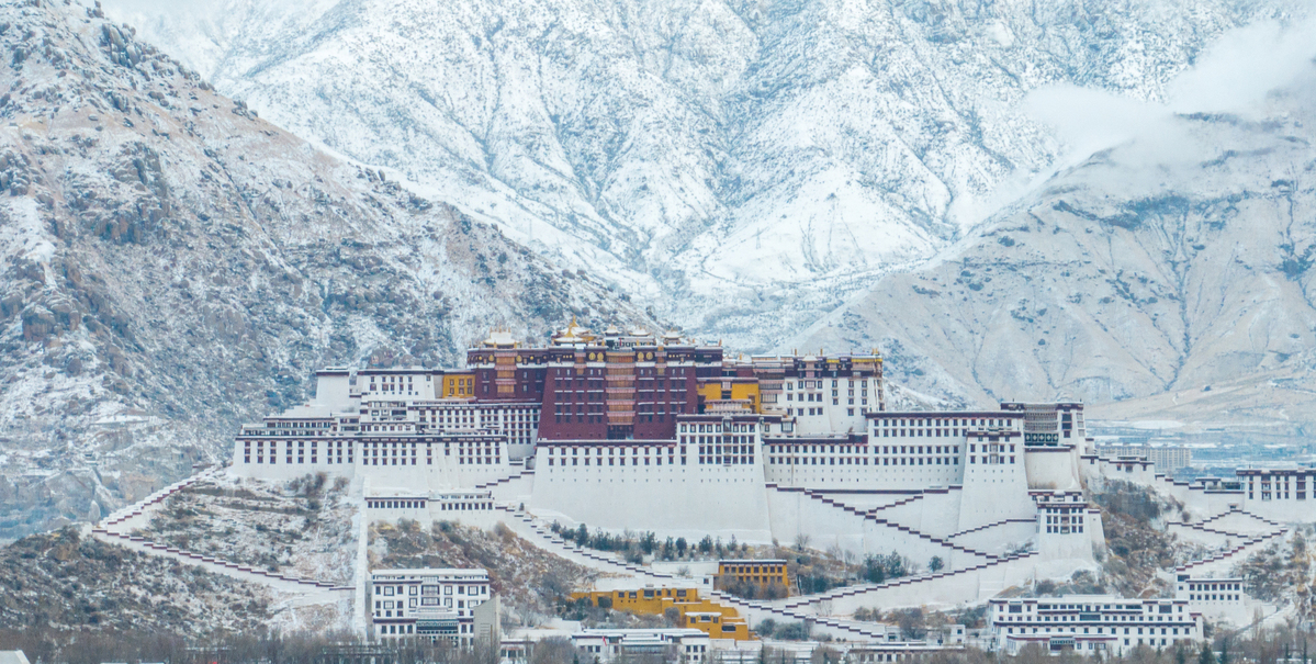 2月16日,無人機拍攝的布達(dá)拉宮的雪景。(圖片來源:新華社)